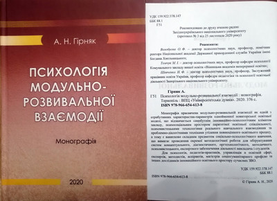 » Вийшла друком монографія Андрія Гірняка "Психологія модульно-розвивальної взаємодії"